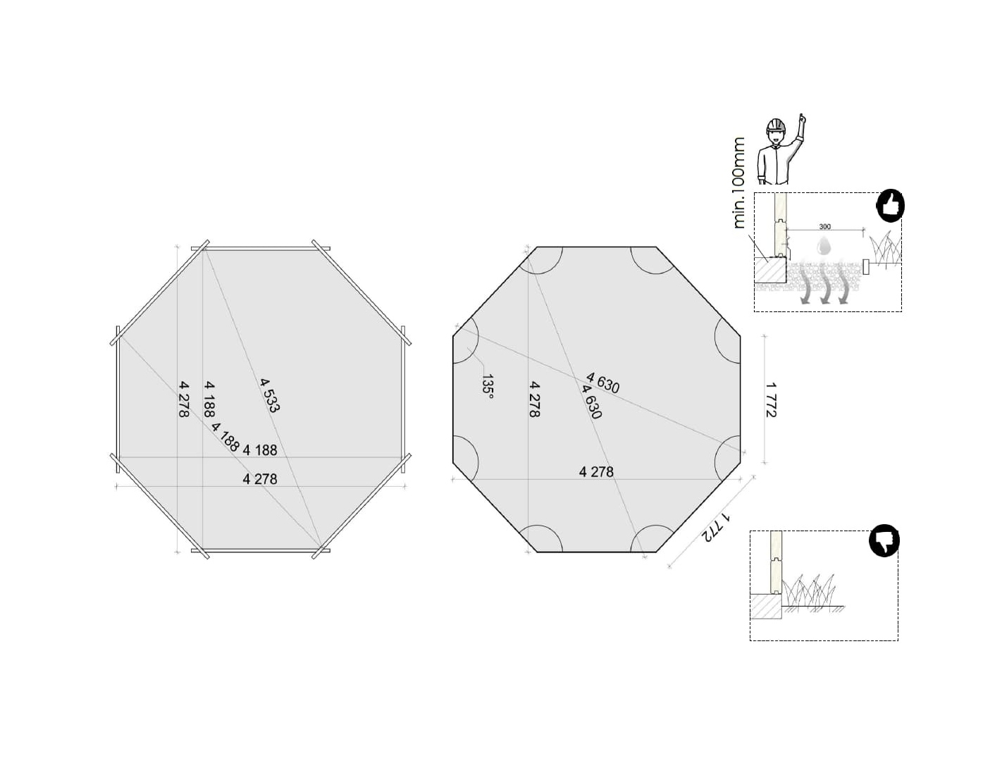 - ne nécessite pas de fondation en béton – une surface plane et stabilisée suffit (par ex. dalles en béton),