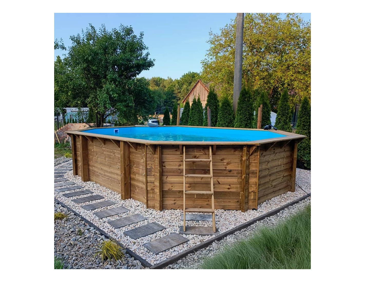 Découvrez une piscine qui associe la beauté naturelle du bois, la stabilité de la structure et la sécurité d’utilisation.