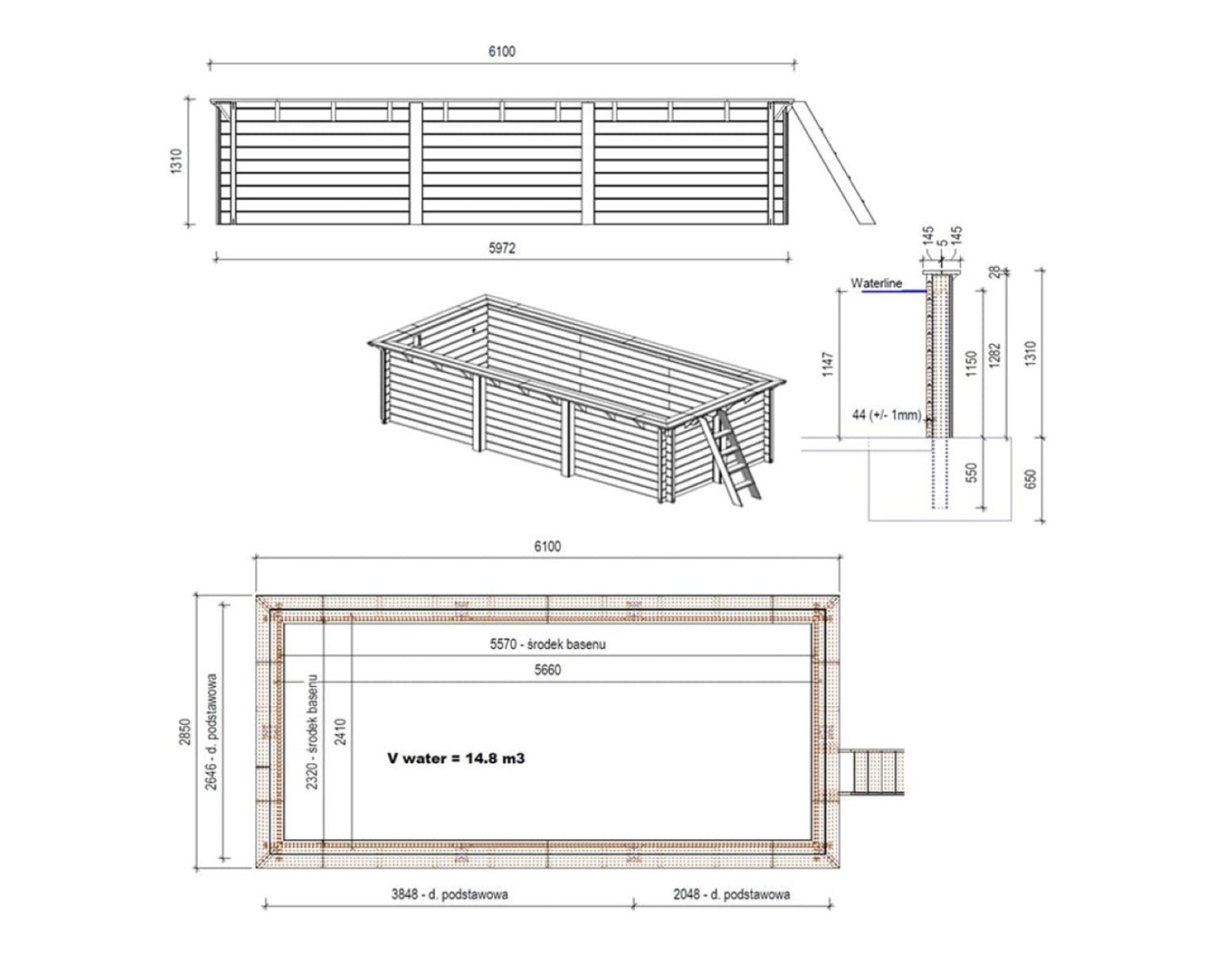Le modèle de piscine aux dimensions 6.1 × 2.85 m et d’une hauteur de 1.31 m a été conçu pour permettre à toute la famille de profiter confortablement de la fraîcheur lors des chaudes journées d’été.