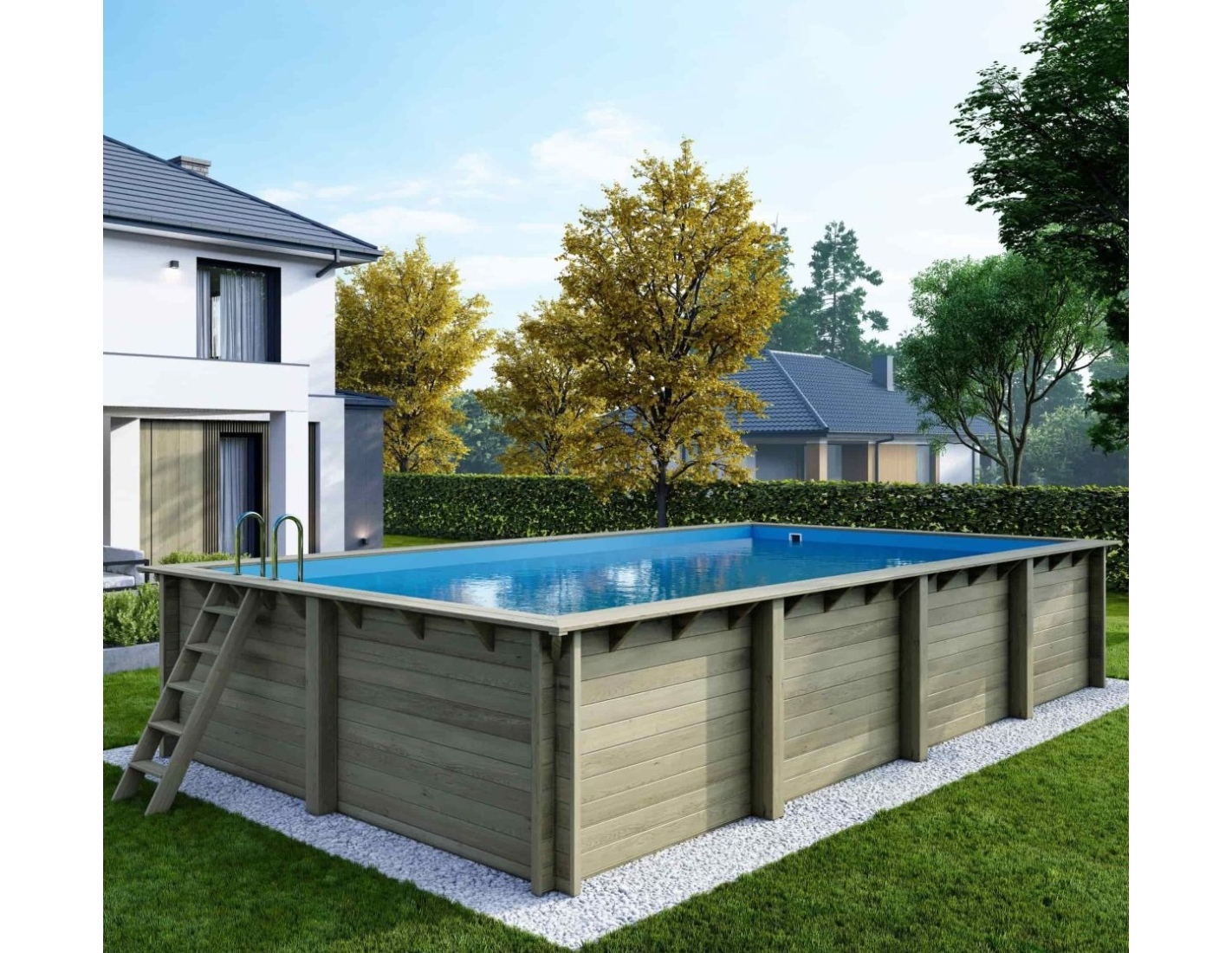 Le bois apporte à l’environnement une touche élégante et chaleureuse, et son aspect classique permet à la piscine de s’intégrer harmonieusement dans tout type de jardin. Vous pouvez ajouter des terrasses en bois, des plantes ou un éclairage décoratif afin de créer une atmosphère véritablement conviviale.