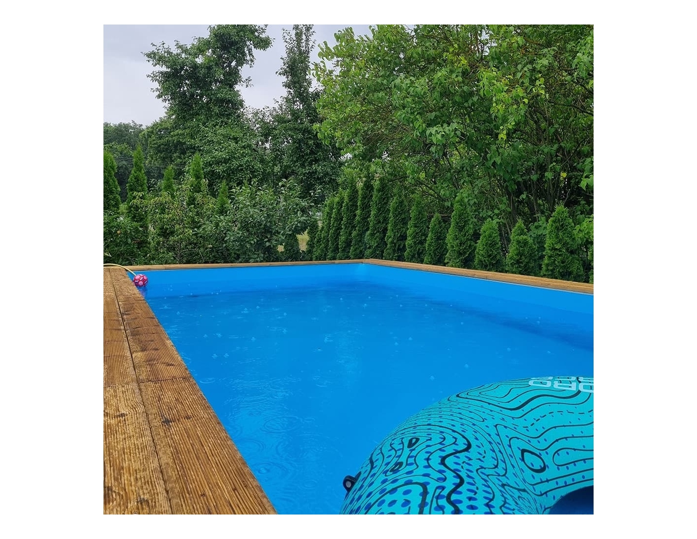 Découvrez notre piscine en bois de dimensions 8.5 m x 4.35 m et d'une hauteur de 1.45 m, fabriquée en bois de pin, imprégnée dans la couleur vert. L'épaisseur des planches est de 44 mm (+/- 1mm), garantissant une construction très solide pour la piscine. L'épaisseur des planches de terrasse est de 28 mm.