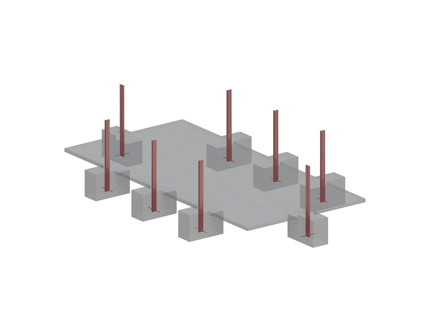 Avant de commencer les travaux de construction, il est important de prendre en compte que les supports métalliques IPN sont fournis avec la piscine. La préparation du sol doit uniquement inclure un nivellement adéquat du terrain, tandis que le coulage du béton ne doit être effectué qu’après la réception de l’ensemble complet, afin d’ancrer correctement les supports dans les fondations. Il est recommandé de réaliser une dalle en béton d'une épaisseur minimale de 10 cm sous l’ensemble de la piscine et d’au moins 65 cm pour les supports IPN. Toutefois, cette dalle ne doit pas être coulée avant l’installation des IPN.