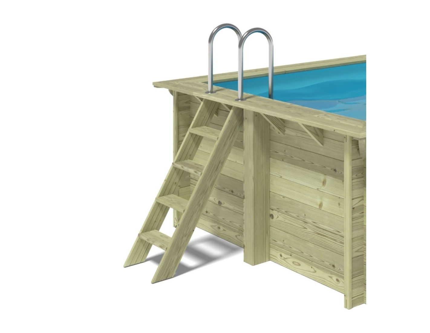 - échelle extérieure en bois, pouvant être retirée lorsque la piscine n'est pas utilisée