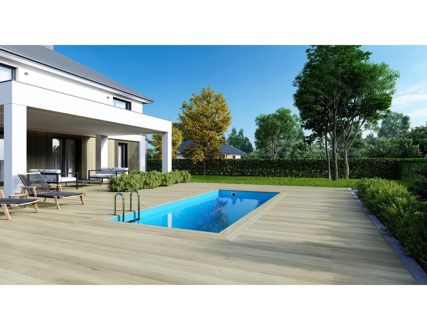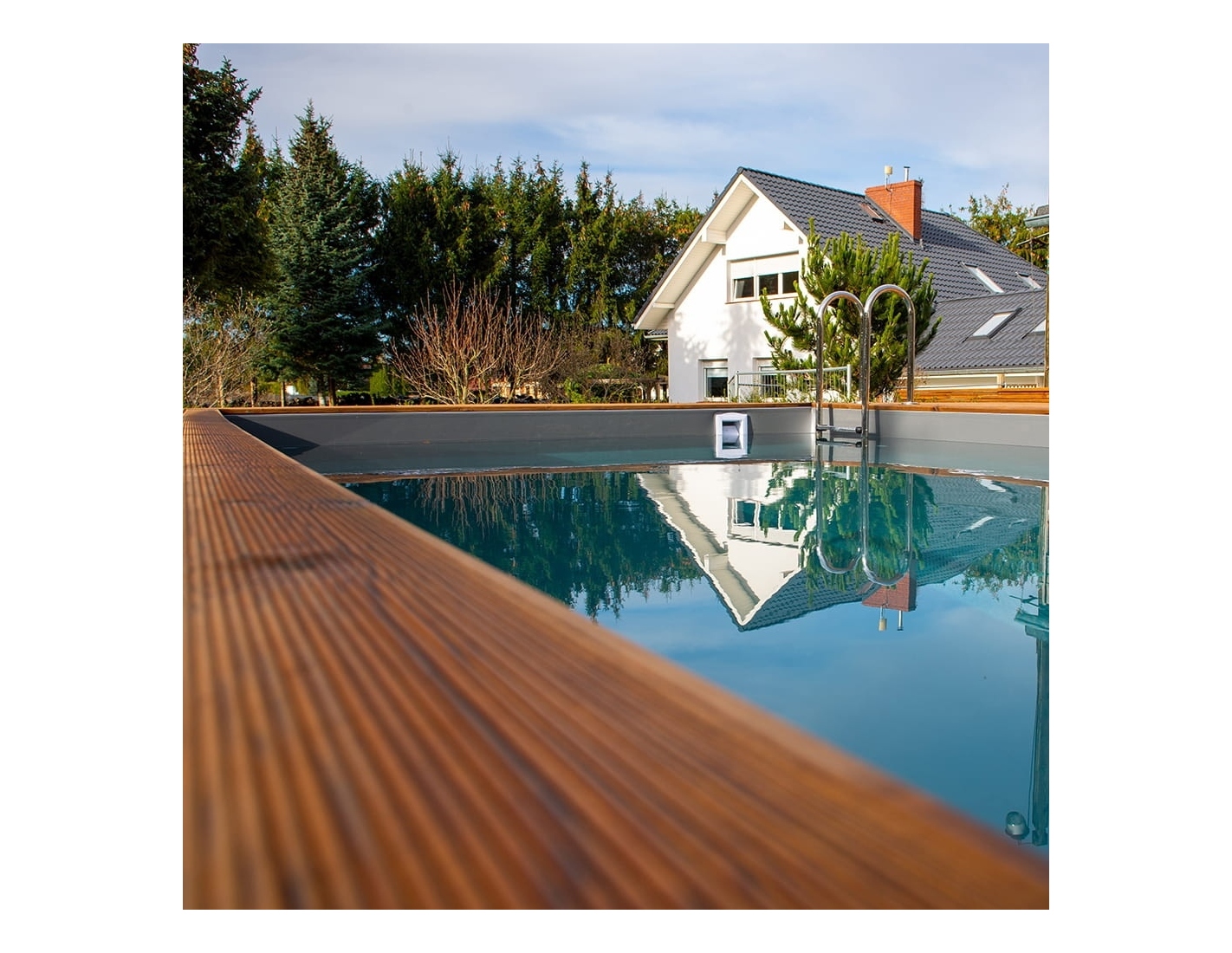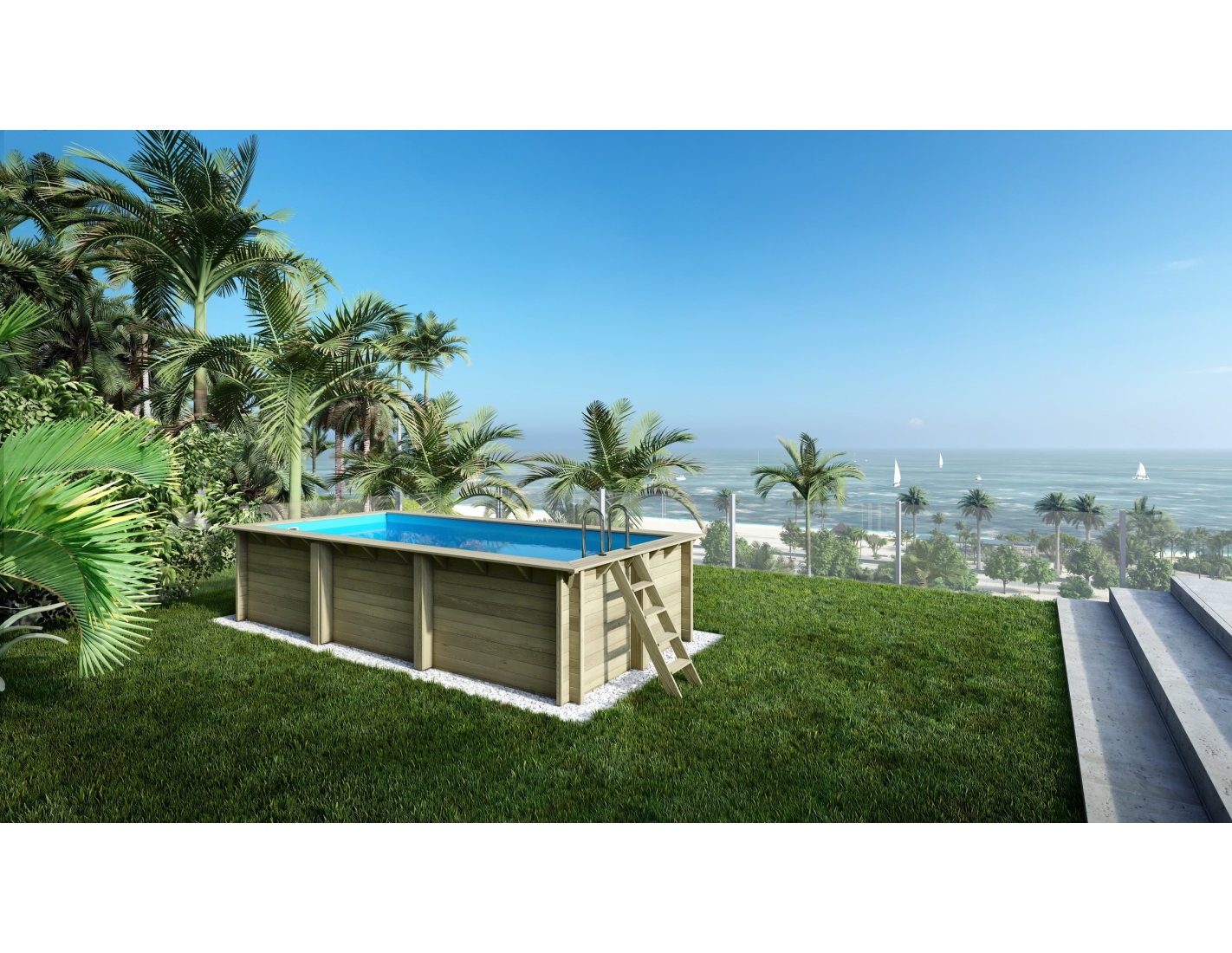 - échelle en bois, avec possibilité de détacher lorsque la piscine n'est pas utilisée