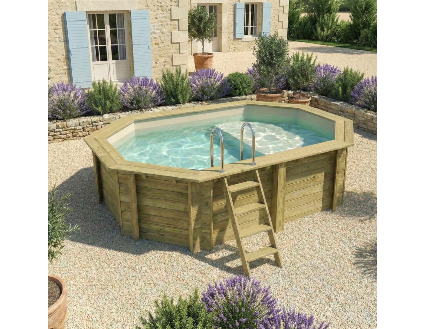 Le bois apporte à l’environnement une touche élégante et chaleureuse, et son aspect classique permet à la piscine de s’intégrer harmonieusement dans tout type de jardin. Vous pouvez ajouter des terrasses en bois, des plantes ou un éclairage décoratif afin de créer une atmosphère véritablement conviviale.