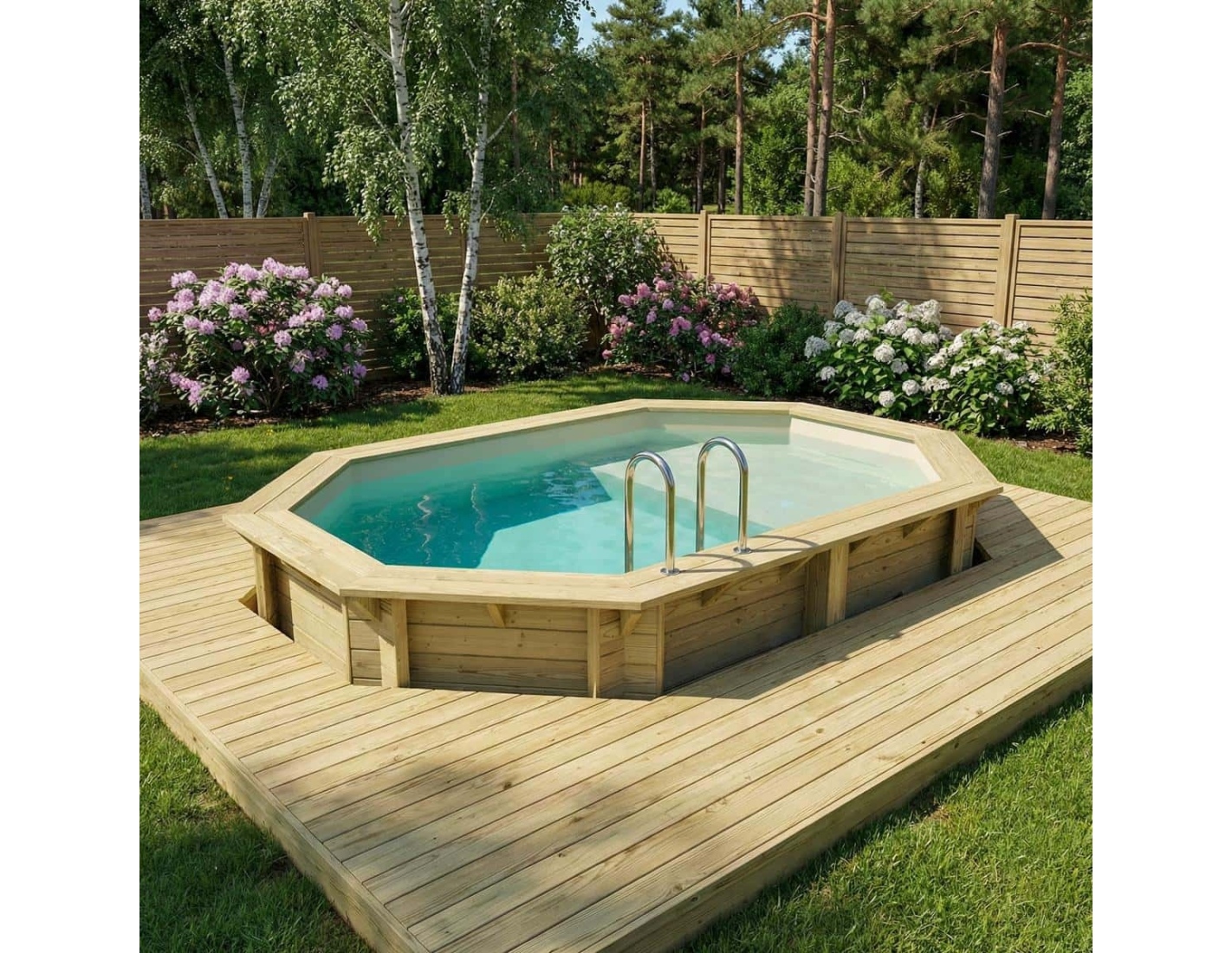 Le bois apporte à l’environnement une touche élégante et chaleureuse, et son aspect classique permet à la piscine de s’intégrer harmonieusement dans tout type de jardin. Vous pouvez ajouter des terrasses en bois, des plantes ou un éclairage décoratif afin de créer une atmosphère véritablement conviviale.