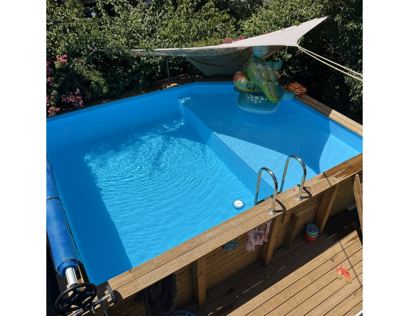 Le modèle de piscine aux dimensions 4.3 × 3 m et d’une hauteur de 1.18 m offre deux niveaux de profondeur – conçu pour ceux qui recherchent plus qu’une piscine en bois classique.