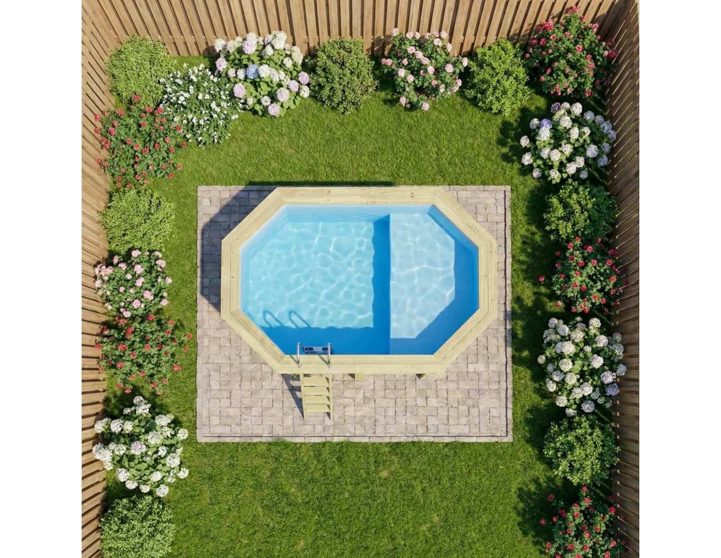 Le bois apporte à l’environnement une touche élégante et chaleureuse, et son aspect classique permet à la piscine de s’intégrer harmonieusement dans tout type de jardin. Vous pouvez ajouter des terrasses en bois, des plantes ou un éclairage décoratif afin de créer une atmosphère véritablement conviviale.
