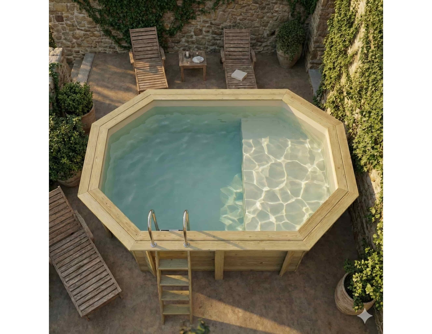 Le bois apporte à l’environnement une touche élégante et chaleureuse, et son aspect classique permet à la piscine de s’intégrer harmonieusement dans tout type de jardin. Vous pouvez ajouter des terrasses en bois, des plantes ou un éclairage décoratif afin de créer une atmosphère véritablement conviviale.