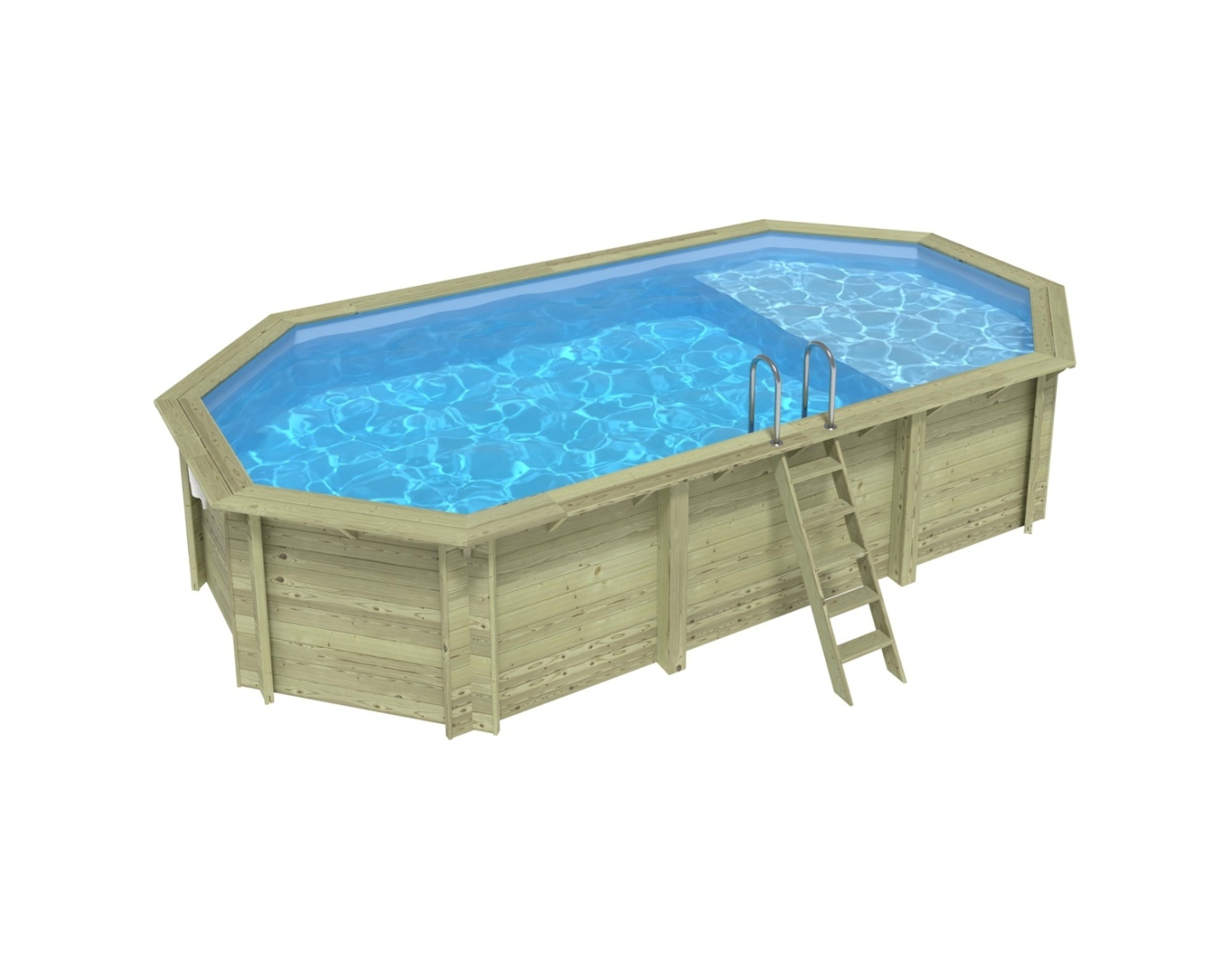 Le modèle de piscine aux dimensions 7.3 × 3.97 m et d’une hauteur de 1.45 m offre deux niveaux de profondeur – conçu pour ceux qui recherchent plus qu’une piscine en bois classique.