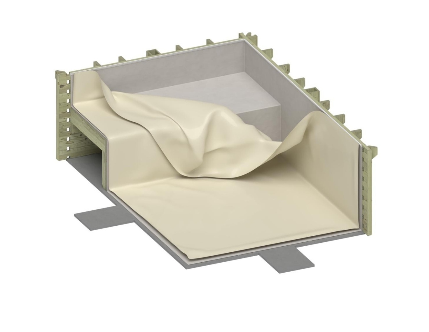 • liner PVC d’une épaisseur de 0.75 mm avec feutre et sous-couche PVC  de nivellement pour la plage,