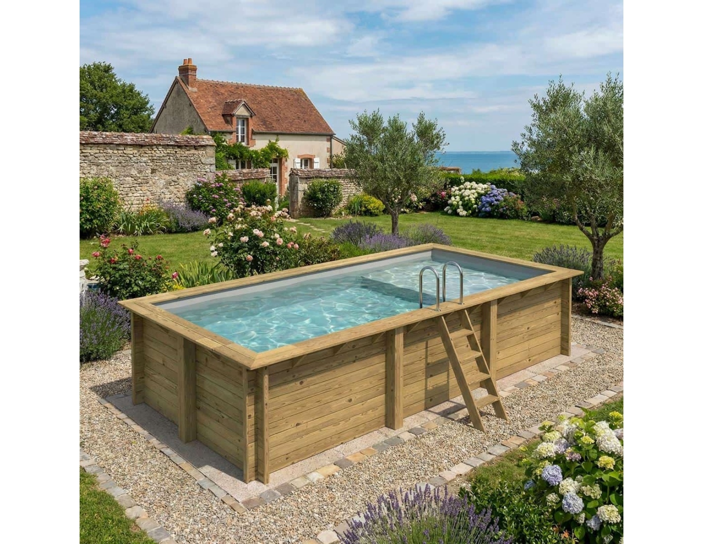Le bois apporte à l’environnement une touche élégante et chaleureuse, et son aspect classique permet à la piscine de s’intégrer harmonieusement dans tout type de jardin. Vous pouvez ajouter des terrasses en bois, des plantes ou un éclairage décoratif afin de créer une atmosphère véritablement conviviale.
