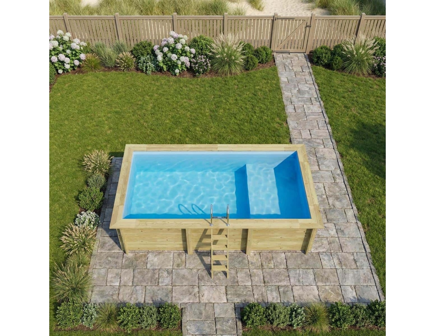 Le bois apporte à l’environnement une touche élégante et chaleureuse, et son aspect classique permet à la piscine de s’intégrer harmonieusement dans tout type de jardin. Vous pouvez ajouter des terrasses en bois, des plantes ou un éclairage décoratif afin de créer une atmosphère véritablement conviviale.