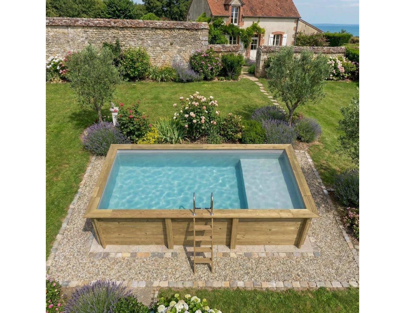 Le bois apporte à l’environnement une touche élégante et chaleureuse, et son aspect classique permet à la piscine de s’intégrer harmonieusement dans tout type de jardin. Vous pouvez ajouter des terrasses en bois, des plantes ou un éclairage décoratif afin de créer une atmosphère véritablement conviviale.