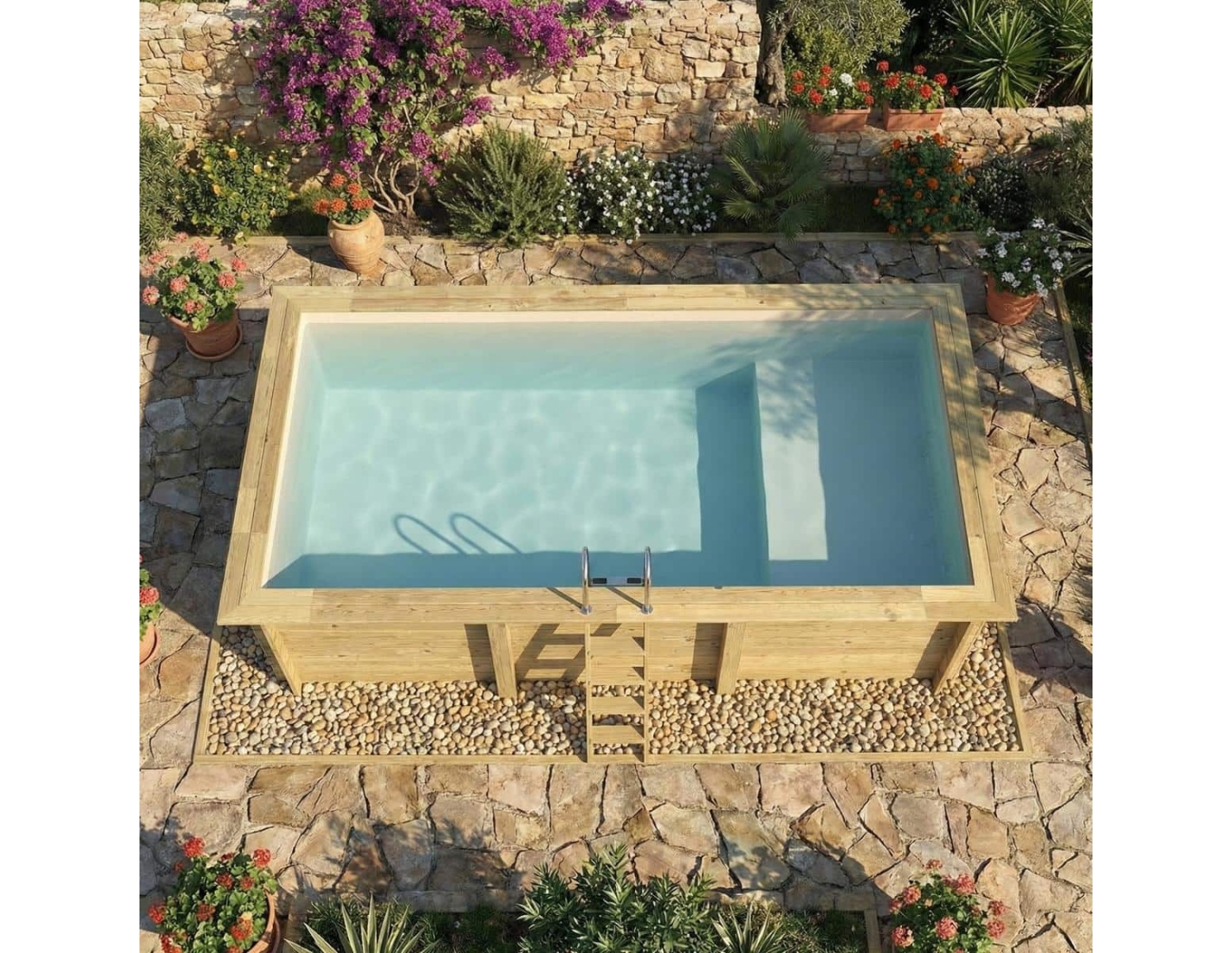 Le bois apporte à l’environnement une touche élégante et chaleureuse, et son aspect classique permet à la piscine de s’intégrer harmonieusement dans tout type de jardin. Vous pouvez ajouter des terrasses en bois, des plantes ou un éclairage décoratif afin de créer une atmosphère véritablement conviviale.