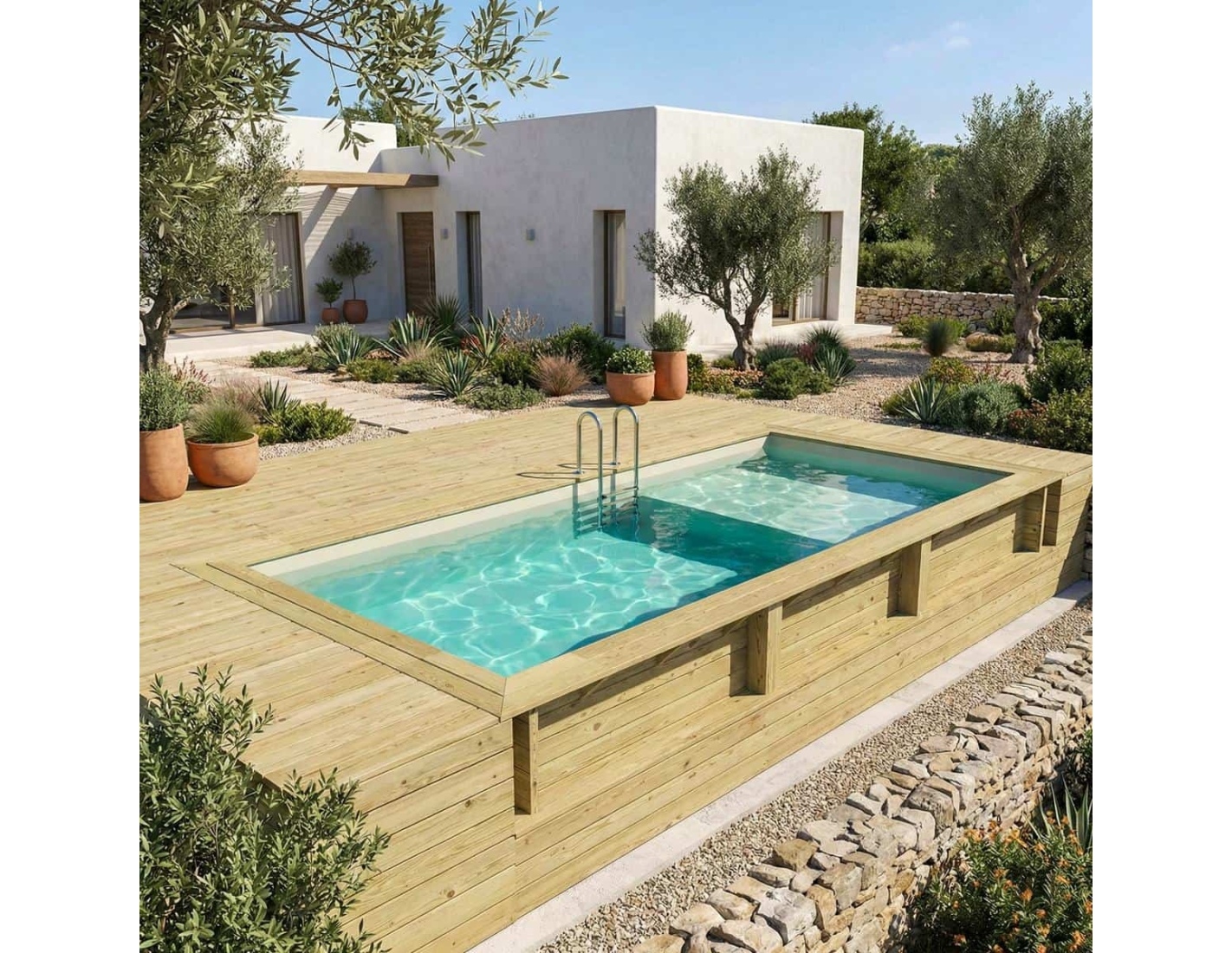 La piscine est fabriquée en bois de pin imprégné qui, en plus de son esthétique, grâce au processus d’imprégnation :