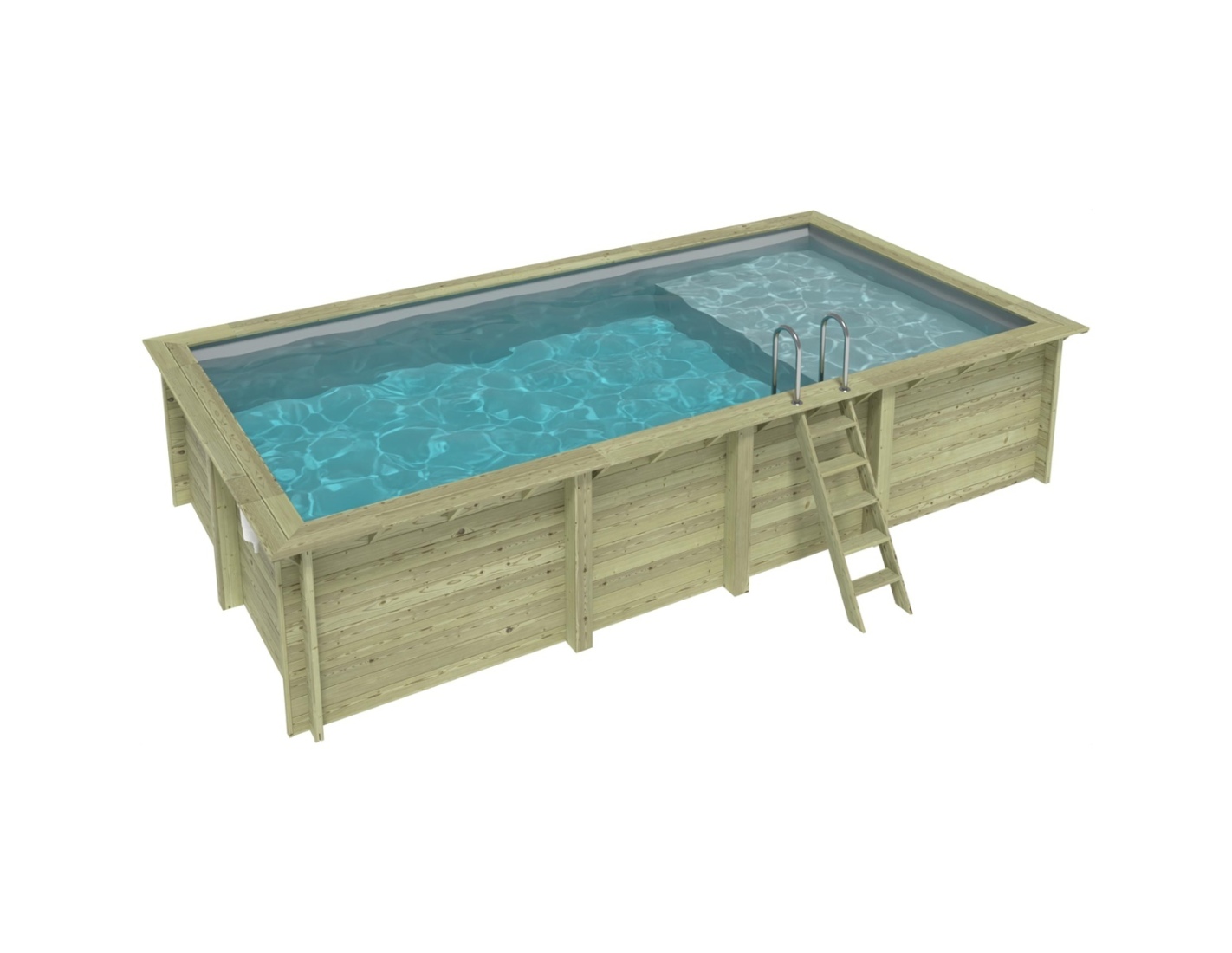 Le modèle de piscine aux dimensions 7 × 3.75 m et d’une hauteur de 1.45 m offre deux niveaux de profondeur – conçu pour ceux qui recherchent plus qu’une piscine en bois classique.