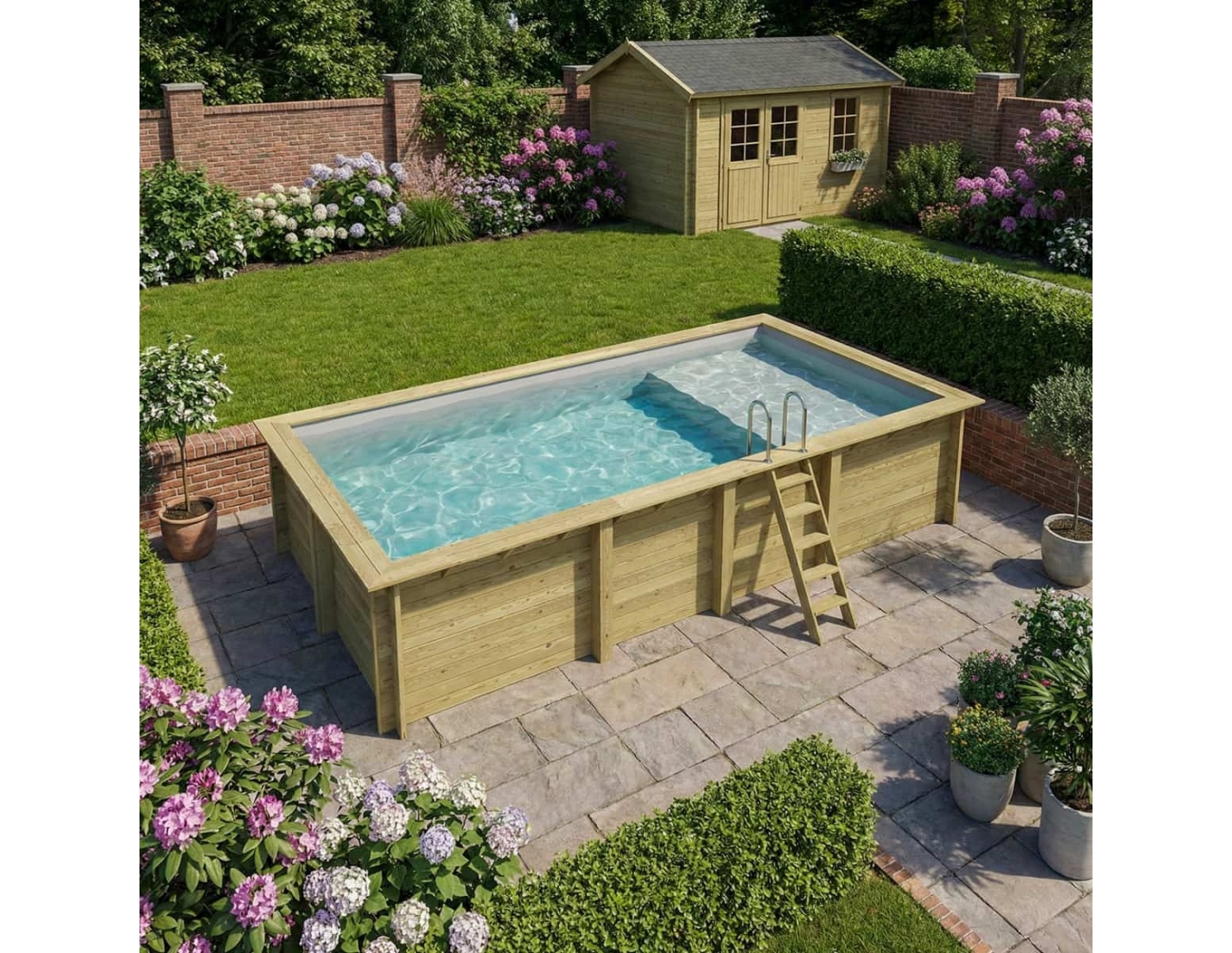 Le bois apporte à l’environnement une touche élégante et chaleureuse, et son aspect classique permet à la piscine de s’intégrer harmonieusement dans tout type de jardin. Vous pouvez ajouter des terrasses en bois, des plantes ou un éclairage décoratif afin de créer une atmosphère véritablement conviviale.