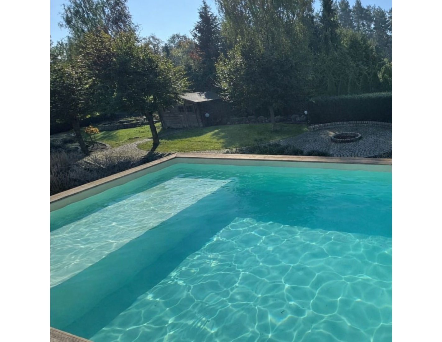 Le modèle de piscine aux dimensions 7 × 3.75 m et d’une hauteur de 1.45 m offre deux niveaux de profondeur – conçu pour ceux qui recherchent plus qu’une piscine en bois classique.