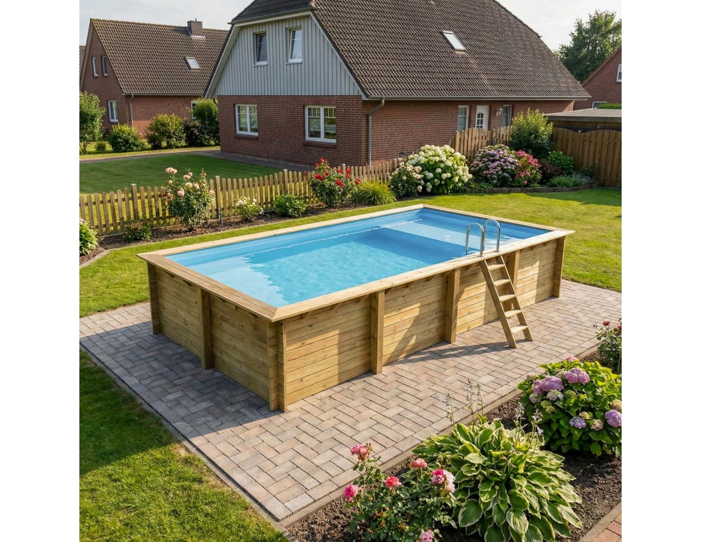 Le bois apporte à l’environnement une touche élégante et chaleureuse, et son aspect classique permet à la piscine de s’intégrer harmonieusement dans tout type de jardin. Vous pouvez ajouter des terrasses en bois, des plantes ou un éclairage décoratif afin de créer une atmosphère véritablement conviviale.