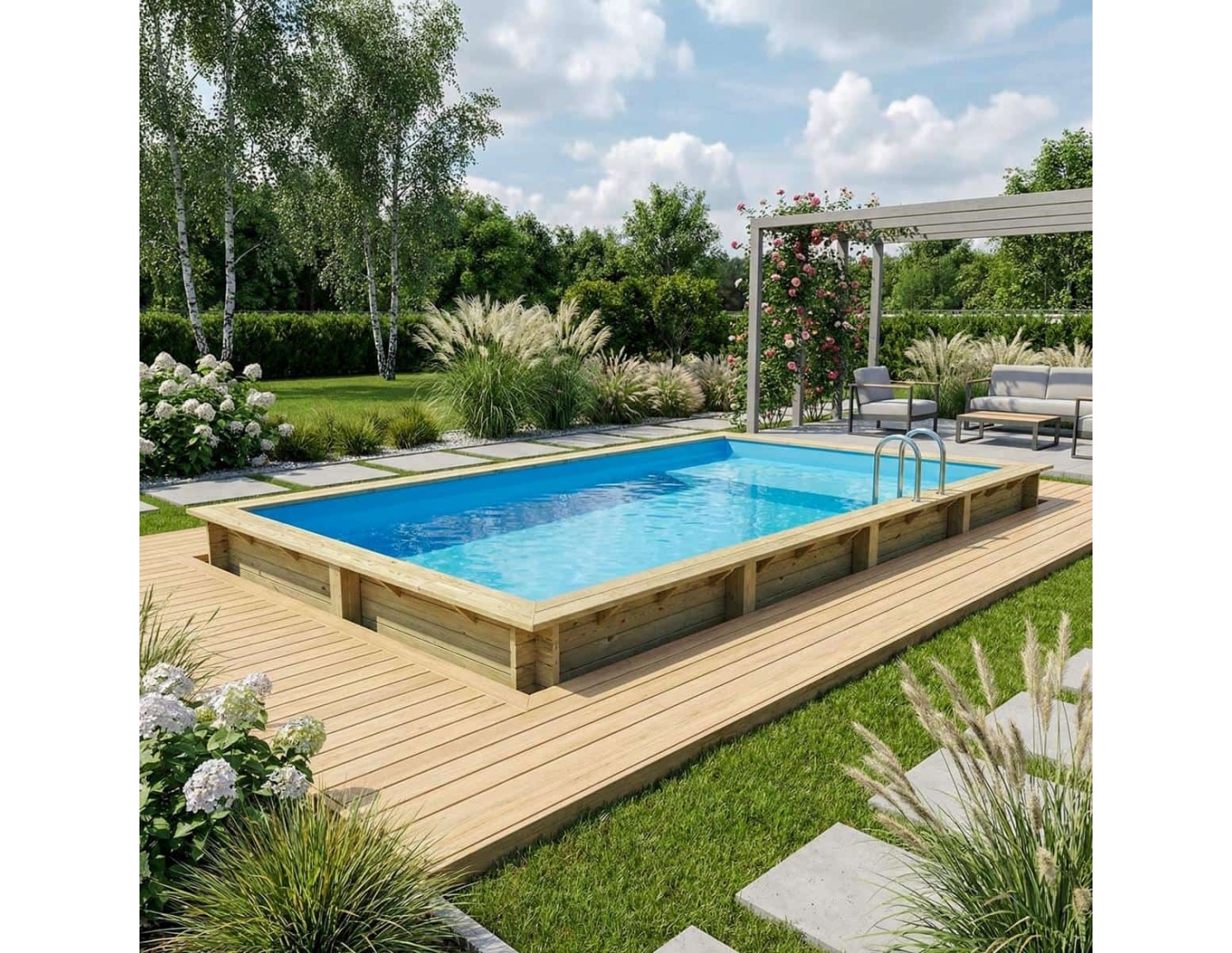 Le bois apporte à l’environnement une touche élégante et chaleureuse, et son aspect classique permet à la piscine de s’intégrer harmonieusement dans tout type de jardin. Vous pouvez ajouter des terrasses en bois, des plantes ou un éclairage décoratif afin de créer une atmosphère véritablement conviviale.