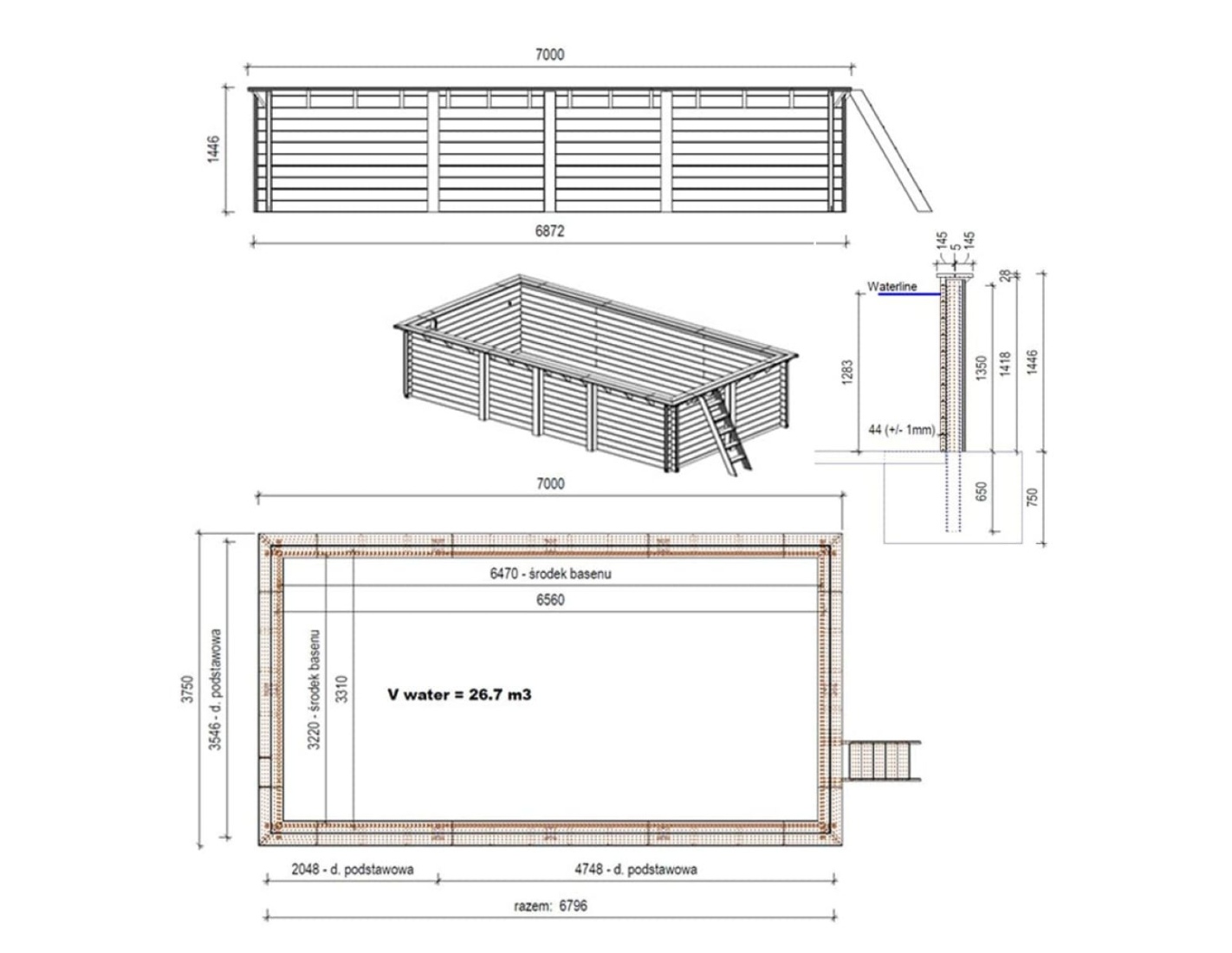 Piscine de jardin en bois d’une capacité de 26.73 m³, fabriquée en bois scandinave imprégné de la plus haute qualité. Idéale pour la détente estivale et les jeux dans le jardin.