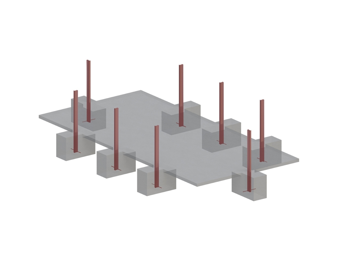 - les poteaux en acier deviennent partie intégrante des fondations,