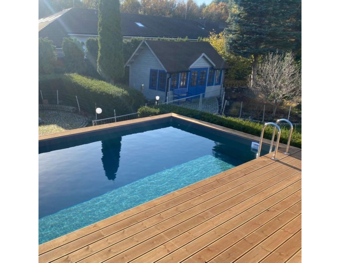 Lors des journées chaudes, la piscine dans le jardin devient votre refuge contre la chaleur – un centre naturel de la vie estivale, où vous pouvez vous détendre, reprendre des forces ou partager des moments avec votre famille et vos amis.