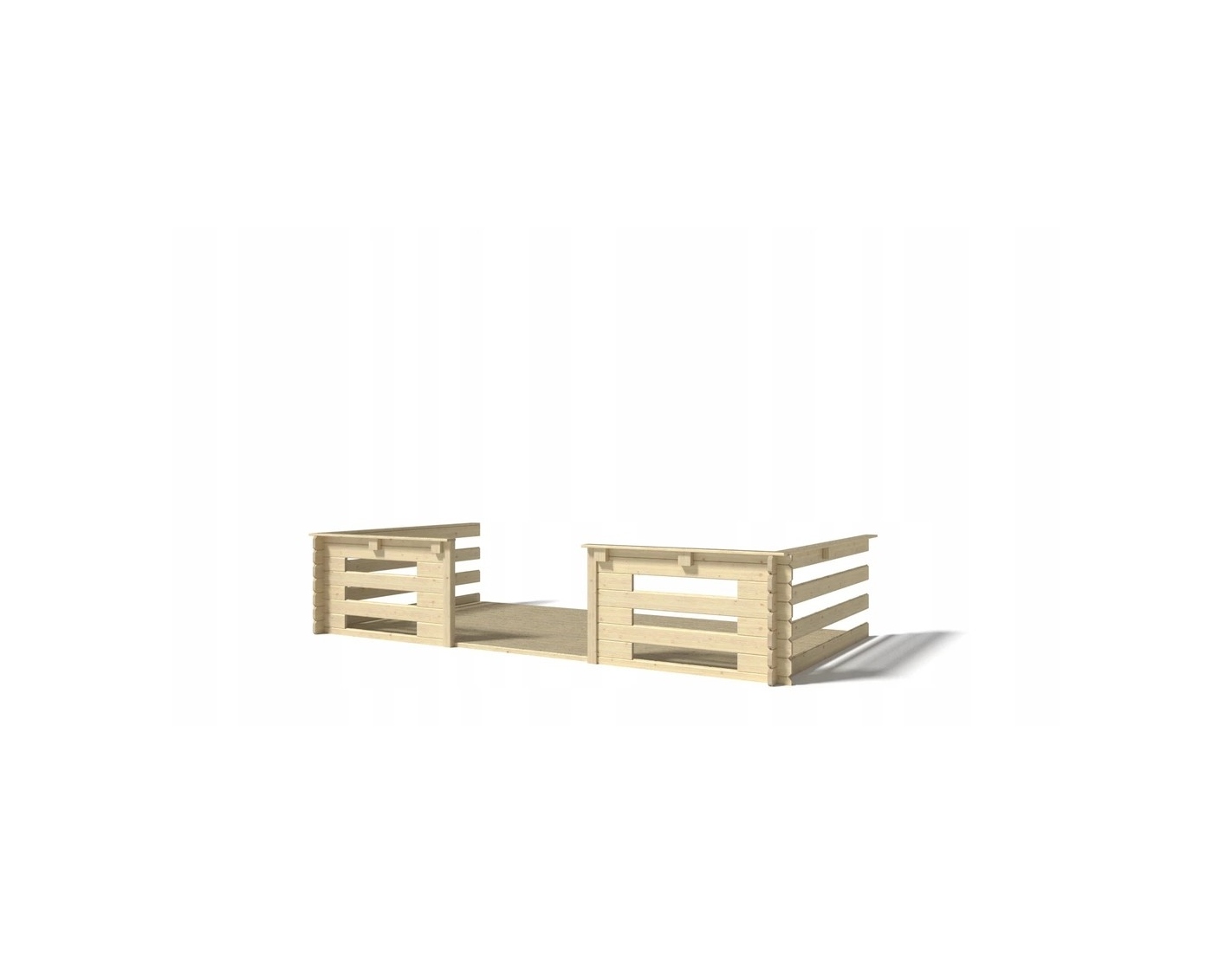 Terrasse en bois avec balustrade DOM393 d'une superficie de 12 m2, d'une largeur de 4 m et d'une profondeur de 3 m. La terrase s'adapte aux abris en bois d'une largeur de 4 m en façade et d'une épaisseur de 28 mm, proposés par ALTANKA p.s.a. Le montage avec les instructions incluses ne pose pas de problèmes.